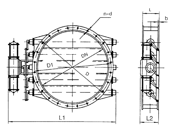 DN  |             D  |             D1  |             L  |             L1  |             L2  |             b  |             n-d  |             氣動(dòng)裝置  |             風(fēng)機(jī)  |             重量(kg)  |