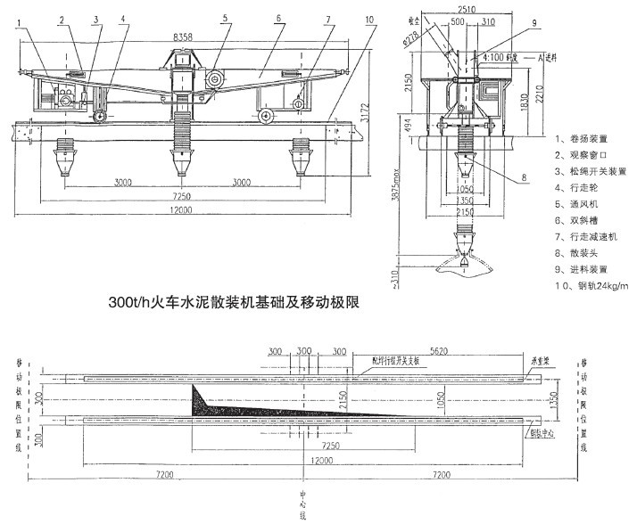 2、散裝頭下降最大行程2500mm,移動最大距離6000mm