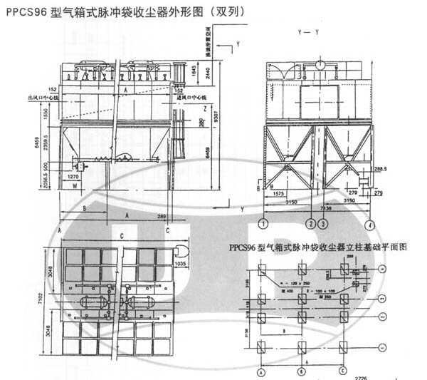 PPCS96型氣箱式脈沖袋收塵器外形尺寸表