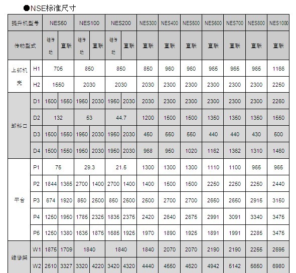 選擇NSE700、NSE800、NSE1000型提升機(jī)時(shí),請(qǐng)與公司技術(shù)部聯(lián)系。