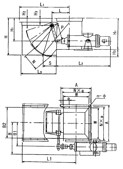 | W | A | A1 | A2 | B | B1 | B2 | L | L1 | L2 | L3 | H | H1 | H2 | H3 | H4 | H5 | P | N×a | n×Φ | |||
