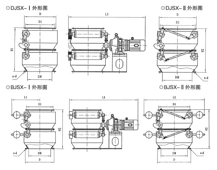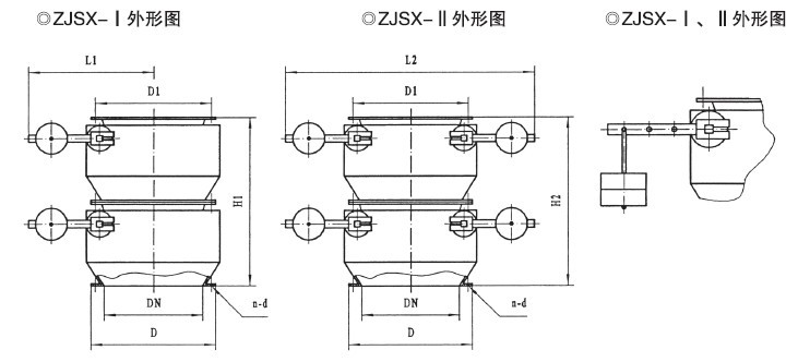 鎖氣翻板卸灰閥為上下交替開閉,自動(dòng)復(fù)位機(jī)構(gòu)。分為:z為重錘自動(dòng)復(fù)位機(jī)構(gòu),具有運(yùn)轉(zhuǎn)平穩(wěn)、節(jié)能,卸灰量大、小可調(diào),卸灰、鎖氣可靠之功能。C為吊錘自動(dòng)復(fù)位機(jī)構(gòu),具有占地面積省、節(jié)能,卸灰調(diào)節(jié)方便,卸灰、鎖氣可靠之功能。B為凸輪、連桿傳動(dòng),重量自動(dòng)復(fù)位機(jī)構(gòu);D為凸輪連桿傳動(dòng),彈簧自動(dòng)復(fù)位機(jī)構(gòu),結(jié)構(gòu)緊湊、設(shè)計(jì)合理、運(yùn)轉(zhuǎn)平穩(wěn),卸灰、鎖氣可靠。是各種無粘度的固體粉料,小于Φ10mm的顆粒料,晶體料,團(tuán)狀料,給、卸料工況的理想設(shè)備。Ⅰ型為單板卸料,Ⅱ型為雙板卸料。