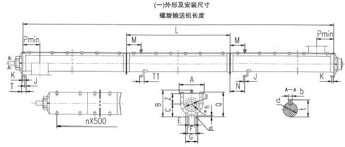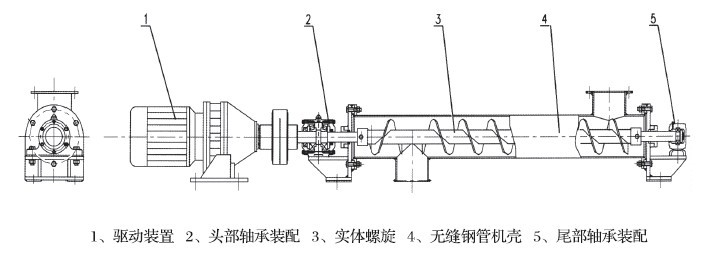 另:本廠還在原LS型螺旋輸送機基礎上改進生產(chǎn)有GLS系列管式螺旋輸送機,其密封性能、控料性能較LS型螺旋輸送機有較大提高,特別適用于輸送各種流動性較好的粉狀物料,其結(jié)構(gòu)型式見下圖: