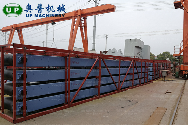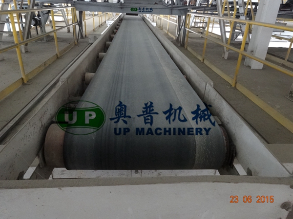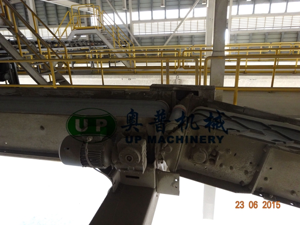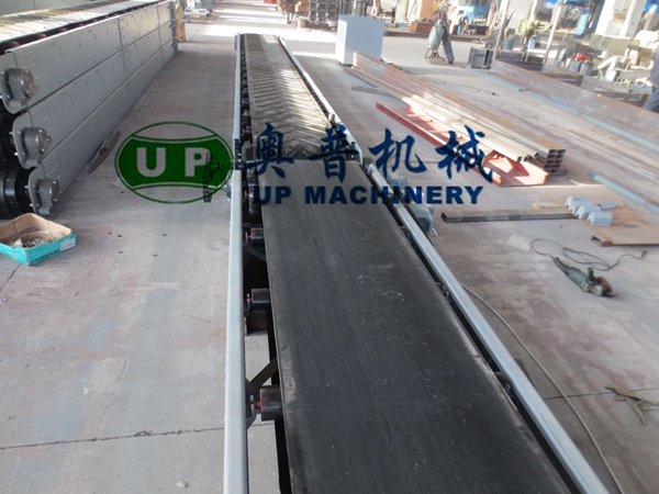 平形膠帶機的支架采用鋼板折彎結構,即美觀又牢固;驅動裝置采用擺線針輪減速機,節(jié)省占地面積;張緊方式為中間垂直螺旋張緊,卸袋機構由旋臂立式膠帶機、電推桿和支架三部分組成,當不需要水泥袋從中間位置卸下時,立式膠帶機處于包裝膠帶機的側邊;當需要水泥袋從中間位置卸下時,由電動推桿拉動立式膠帶機使其擺動與包裝膠帶機縱向成交叉位置,并開動立式膠帶機即可。